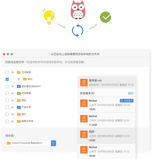 文件多次修改时,使用同步端传输,可自动帮你保存每一个版本,